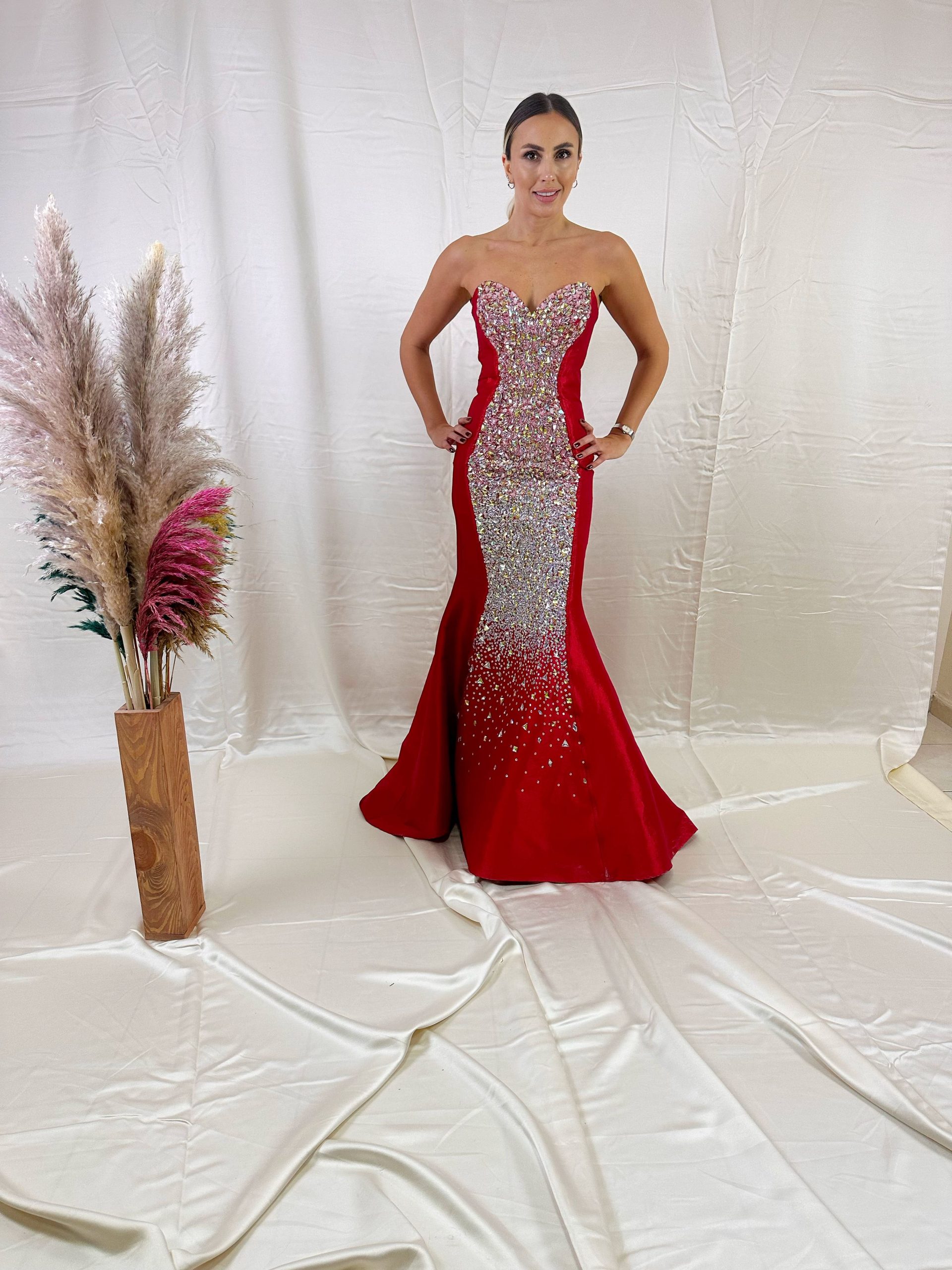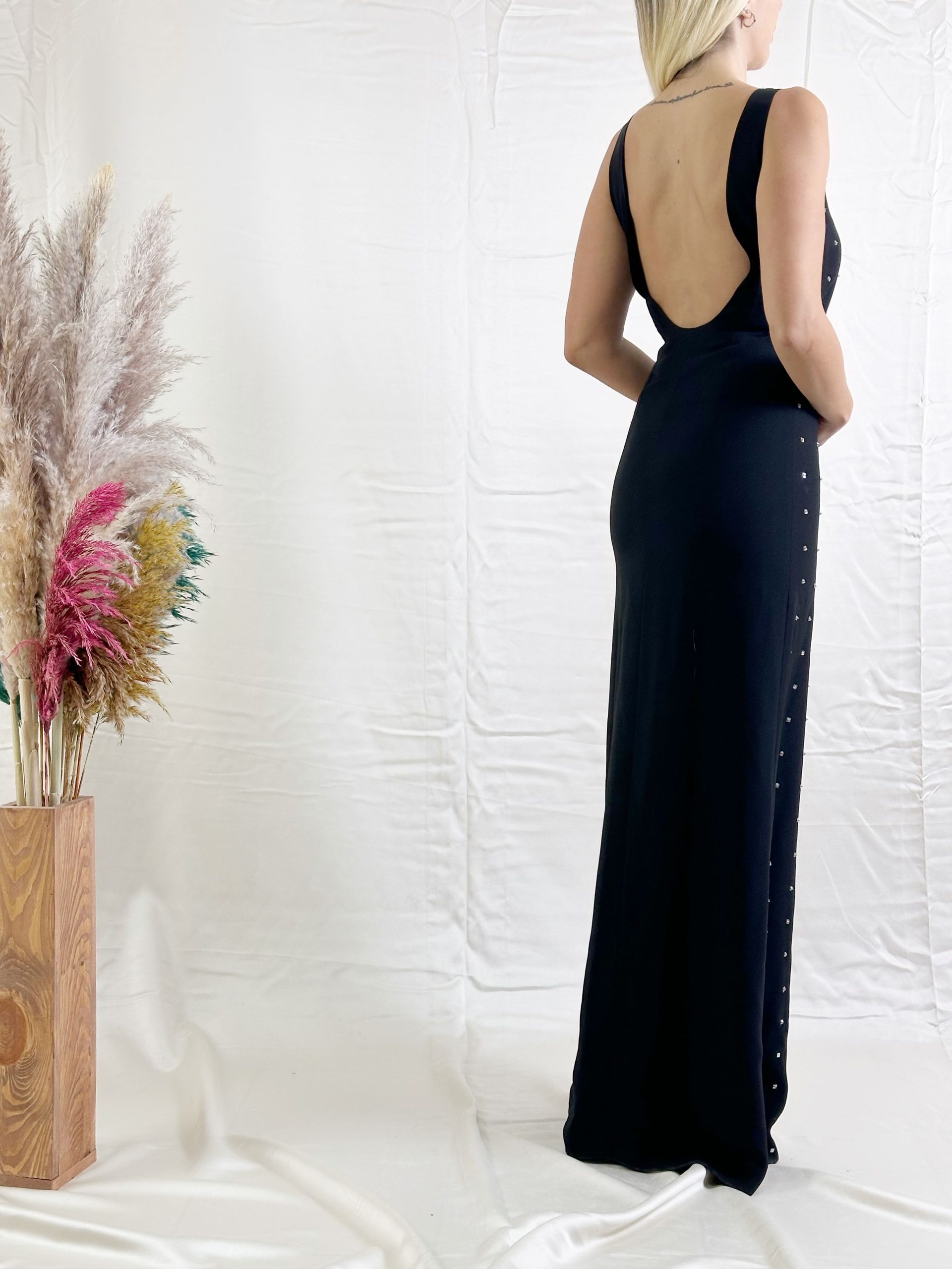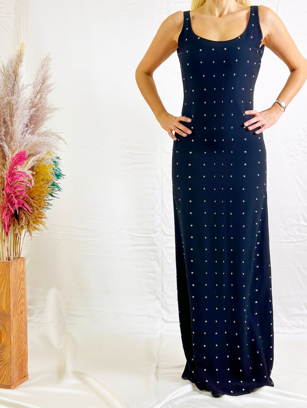 Ürün Detayları: Normal kesim, kare yakalı, sırt dekolteli uzun taşlı elbise.Kalıp olarak 34-36 bedene uygundur. Yalnızca kuru temizleme yapılır.